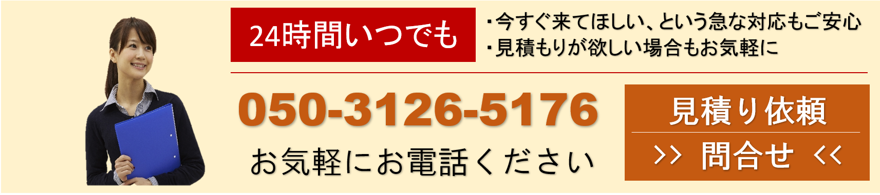24時間いつでも受け付けているので、すぐに相談も依頼もできます。